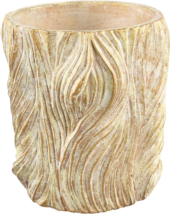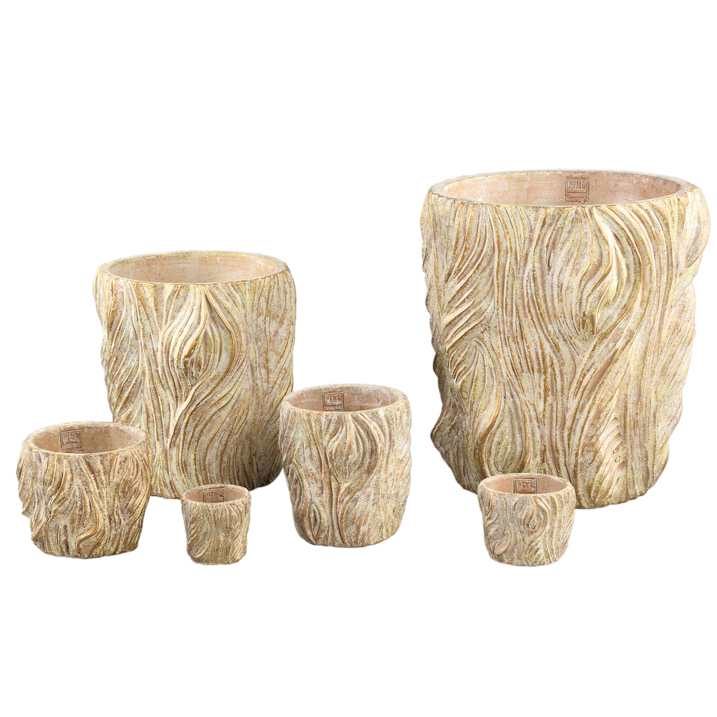 Crème kleurige cementpot Alexio met golvende lijnen - XL formaat Ø30 x H30 cm