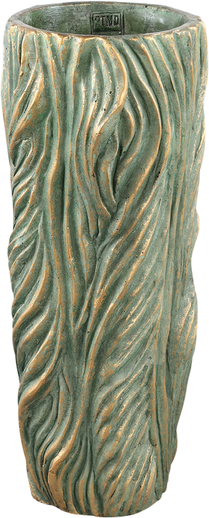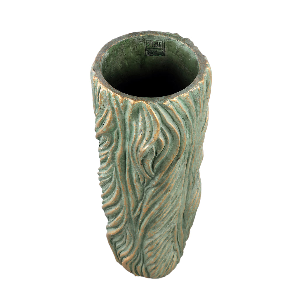 Alexio Groene ronde cementpot met golvende lijnen - Hoogte L Ø20 x H45 cm