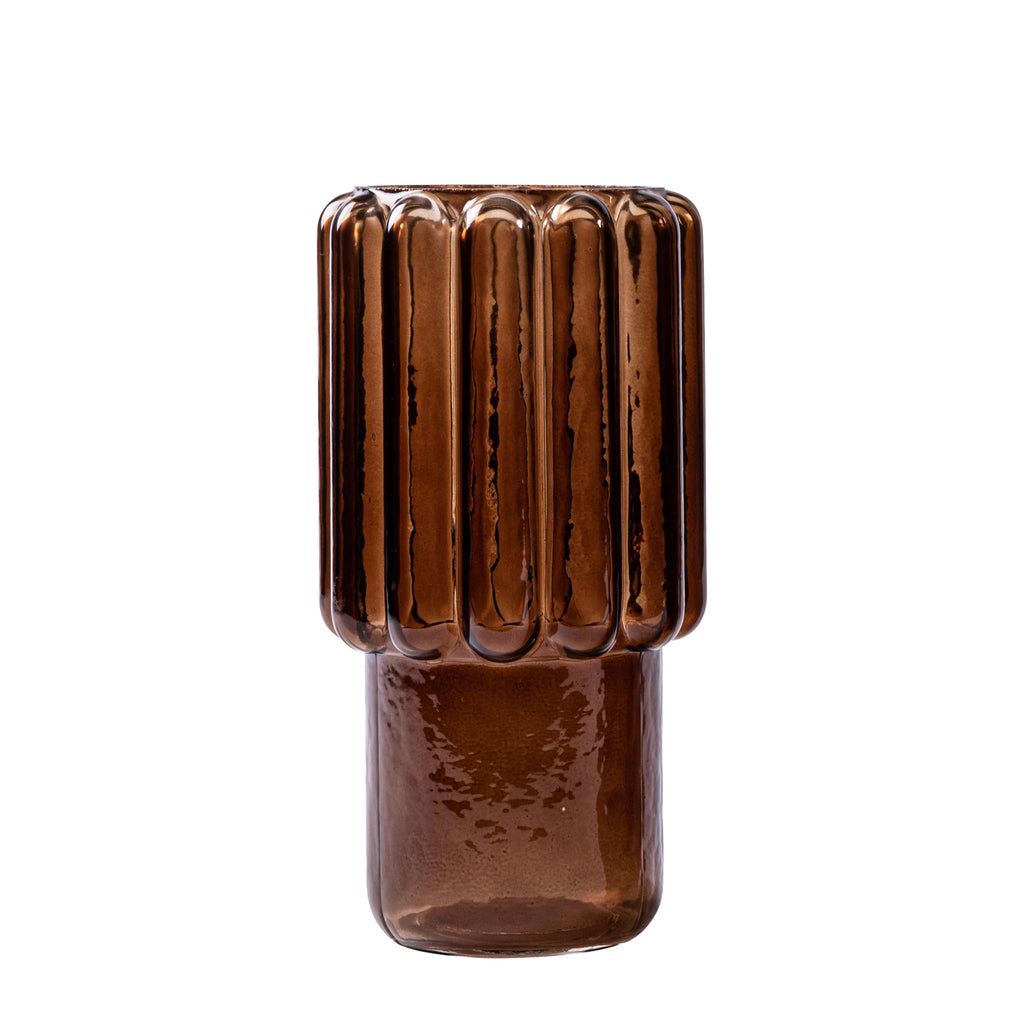Bastor Brown glass vase round bars design S Ø12 x H23 cm