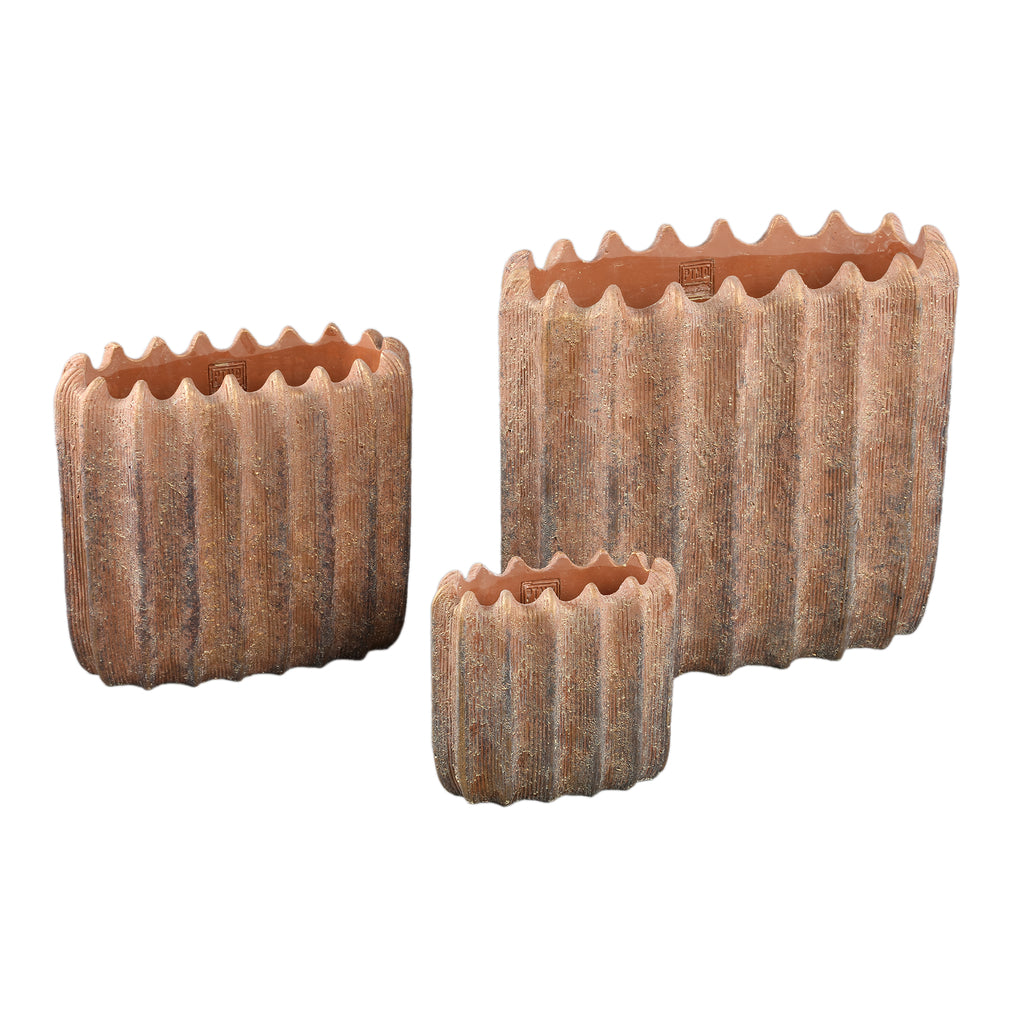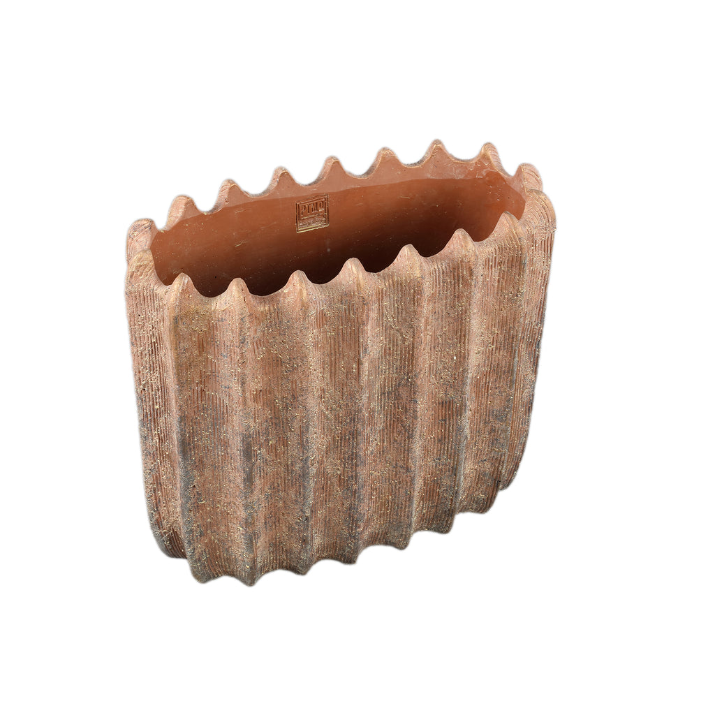 Brigett Koperen Cement Pot Ribbelig Ovaal L Ø20 x H36 cm
