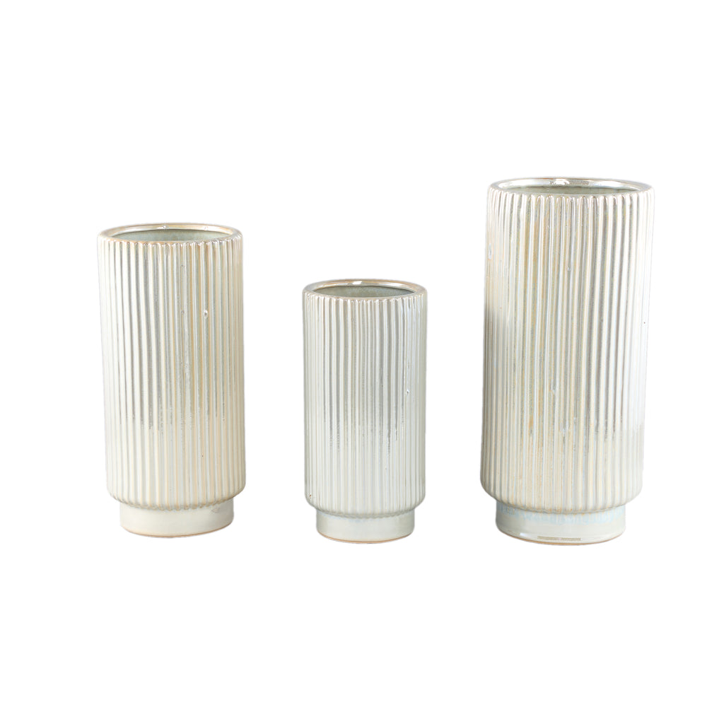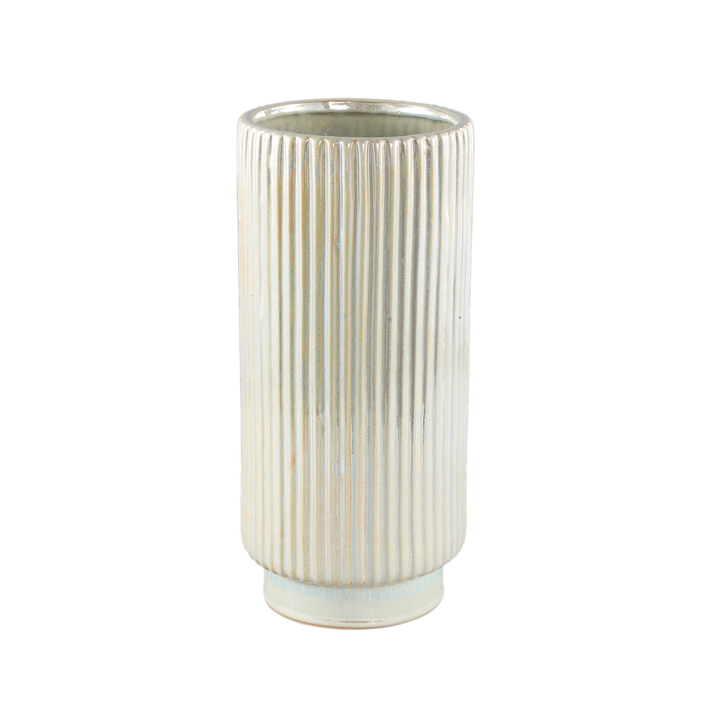 Eviera Parels glanzende geglazuurde keramische pot met ribbels en ronde vorm Ø16 x H36 cm