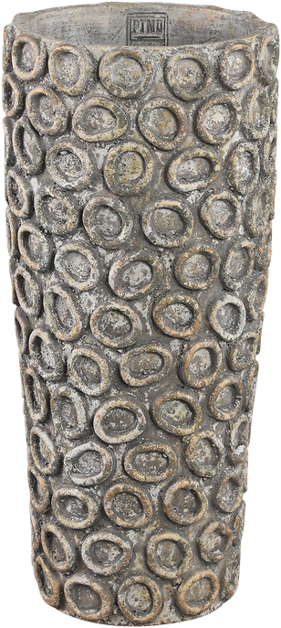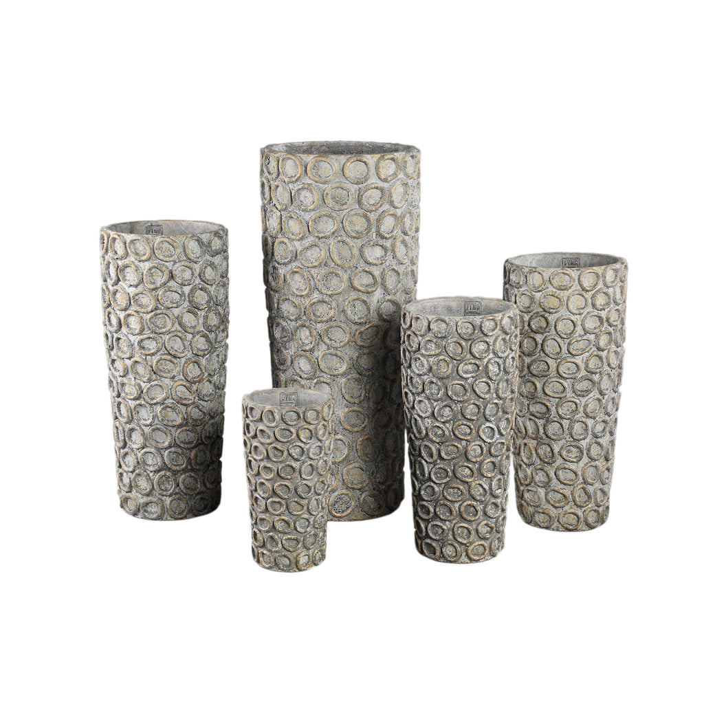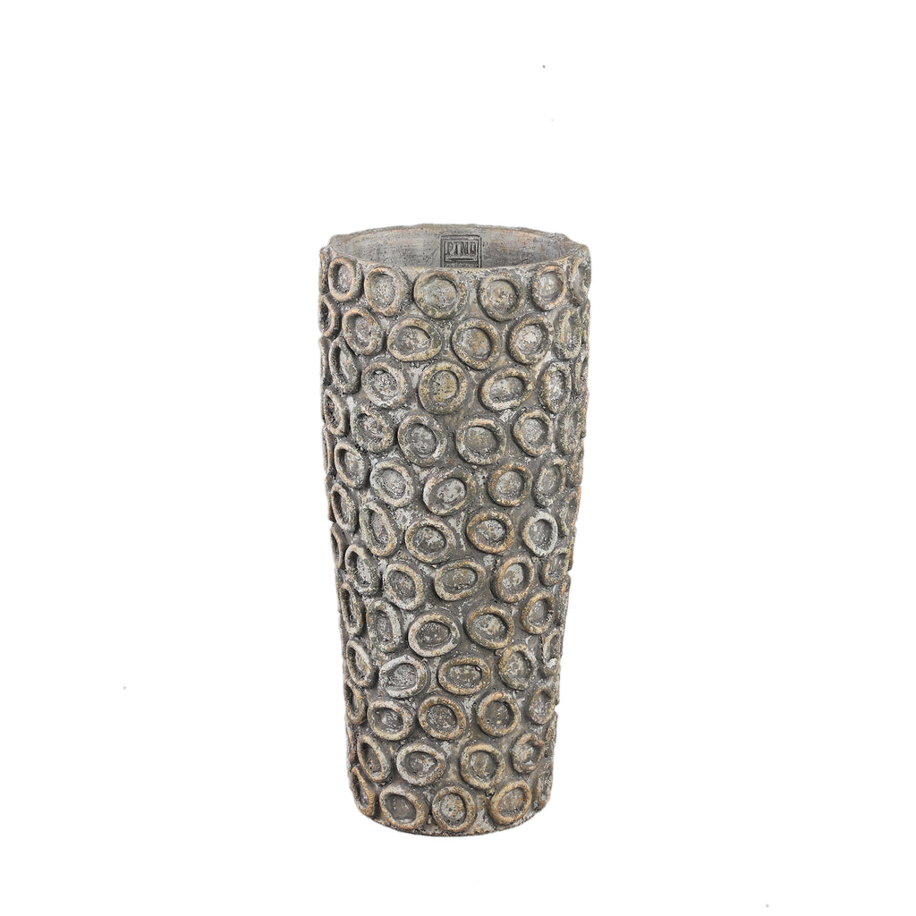Ginte Grey cement pot round with circles high S Ø20 x H45 cm