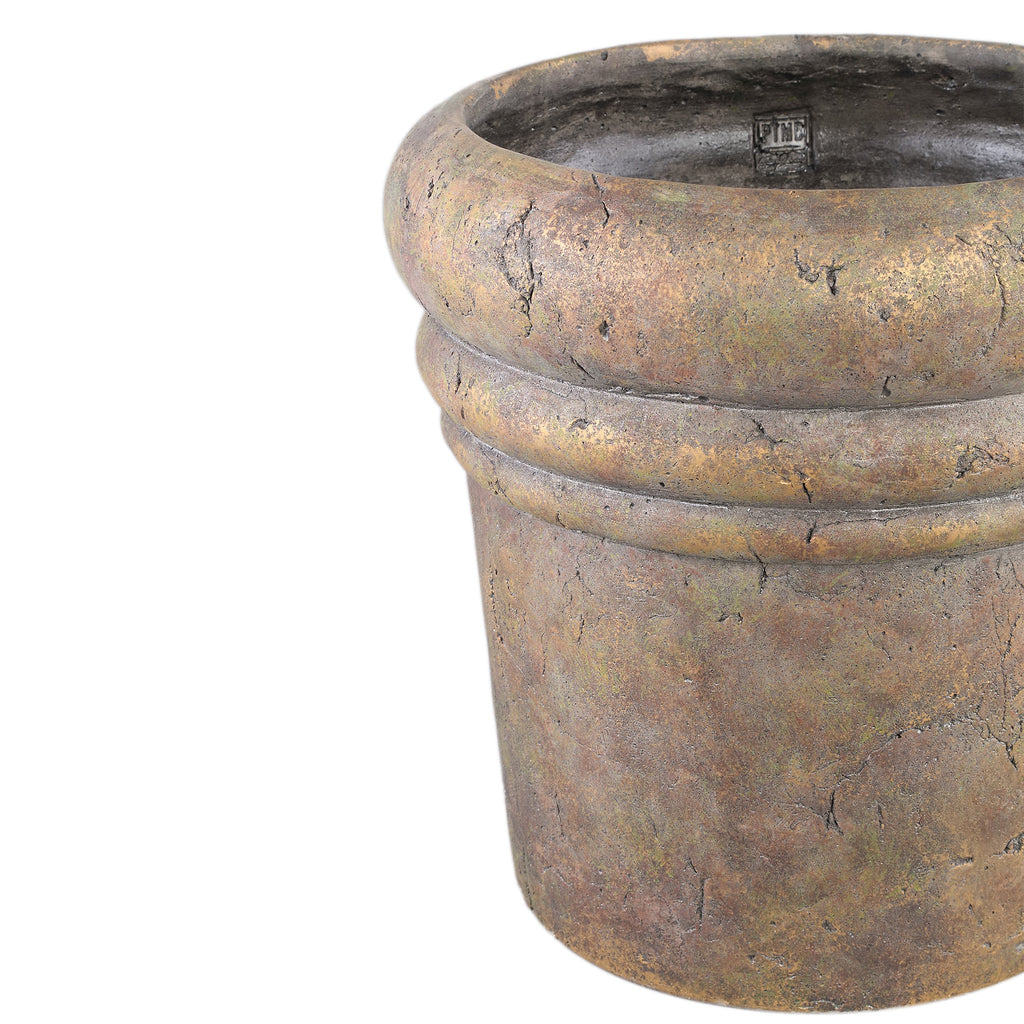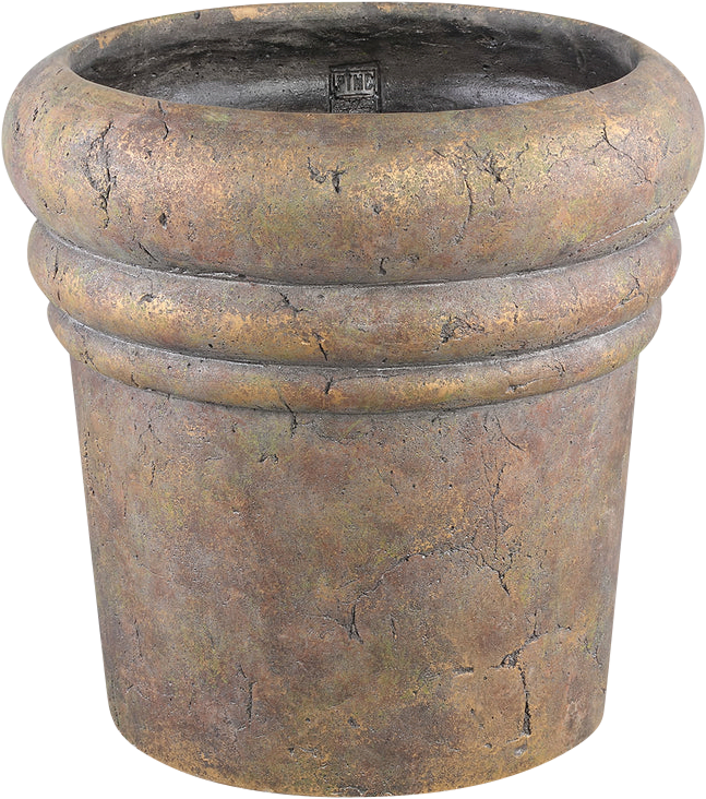 Helena Bruine Cementen Pot Rond met Gouden Afwerking XXL Ø40 x H40 cm
