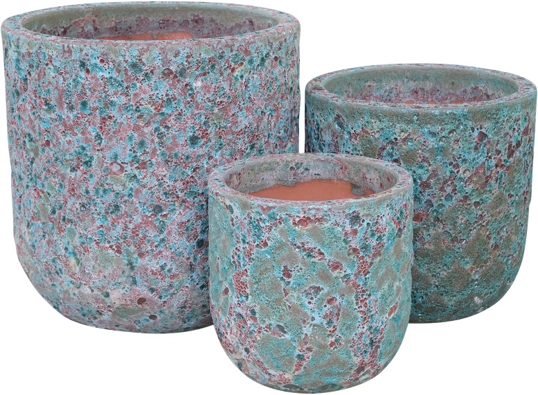 Hiza Groene ronde keramische pot met ruwe afwerking laag SV3 Ø45 x H45 cm