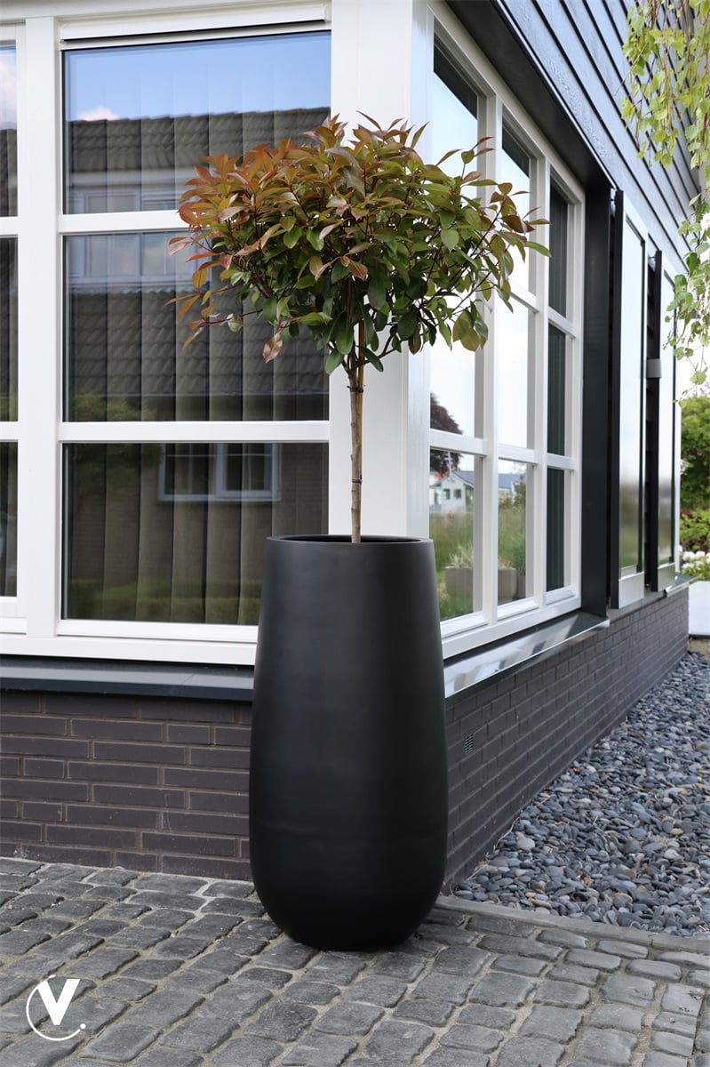 Deze matzwarte, cilindervormige plantenpot combineert eenvoud met verfijning. De gestroomlijnde vorm geeft een moderne touch aan elke omgeving en biedt voldoende ruimte voor middelgrote tot grote planten.