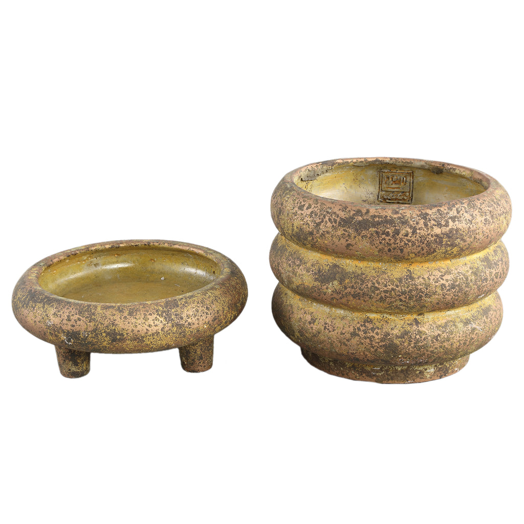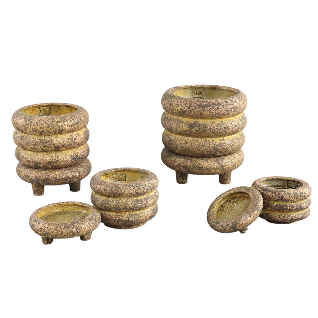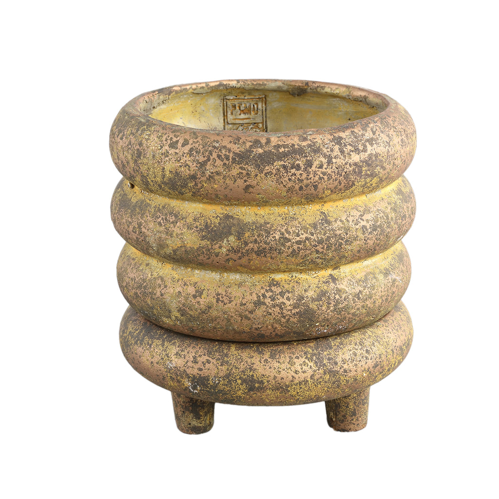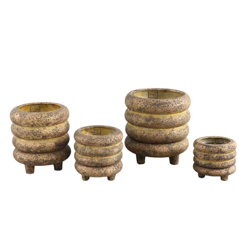 Meerlaagse Cementen Plantenpot Goud Rond Ø20 x H21 cm