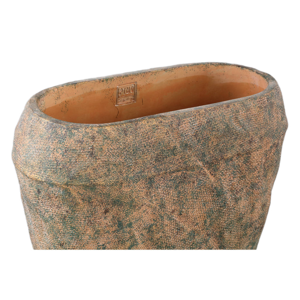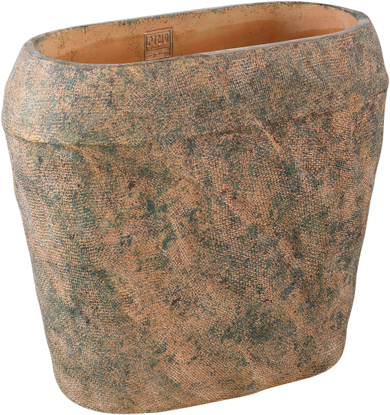 Lourdes Bruine cementen pot met jute patroon groen ovaal L Ø20 x H36 cm