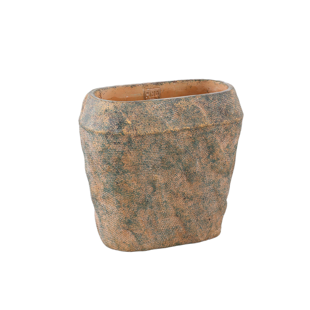 Lourdes Bruine Cementen Pot Groen Ovaal S Ø15 x H28 cm