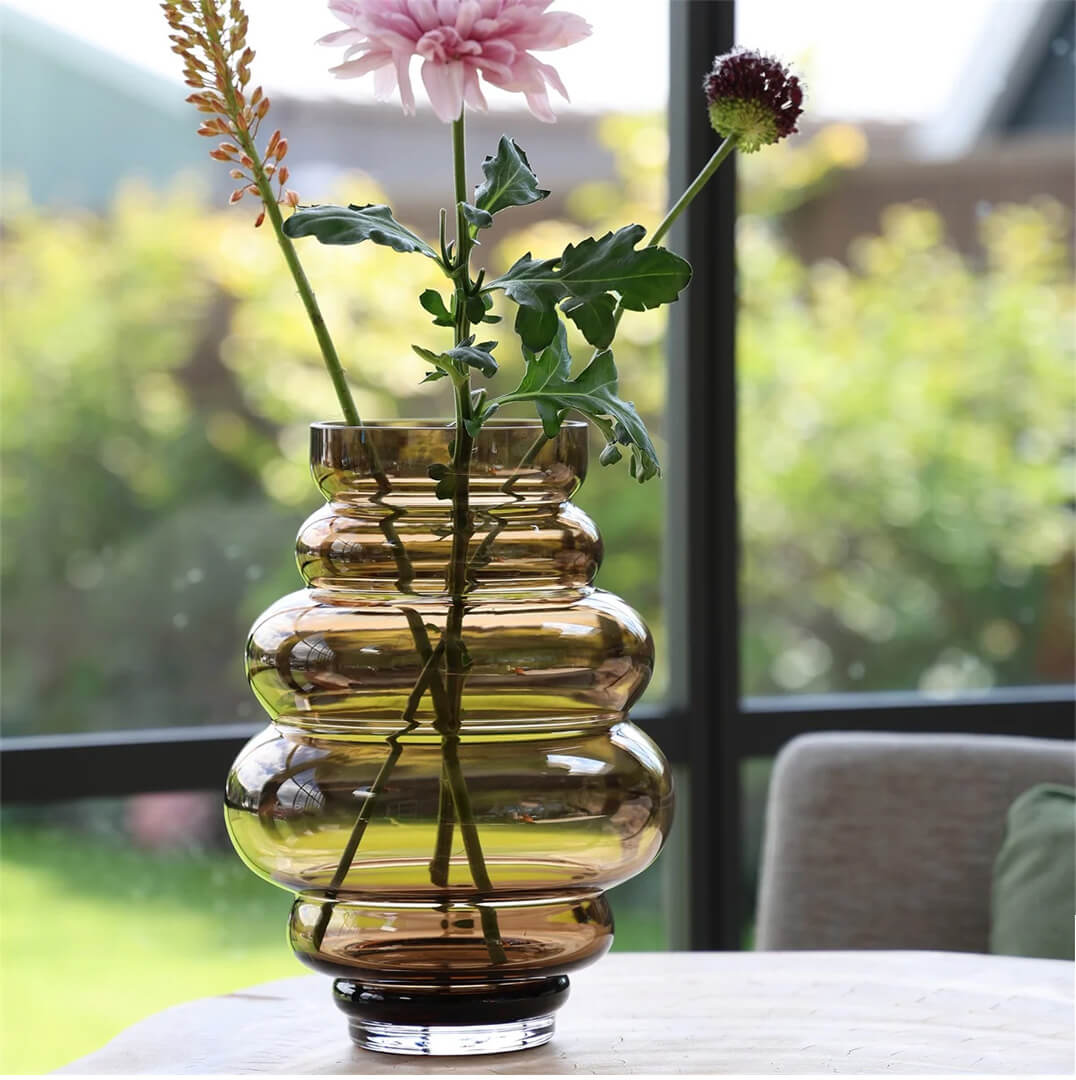 Voor op ieder dressoir, tafel of keukenblad: Deze mondgeblazen vaas zorgt voor een stijlupgrade in een handomdraai. Zijn extra dikke glas heeft naast zijn hoge kwaliteit ook een opvallend stoer karakter.
