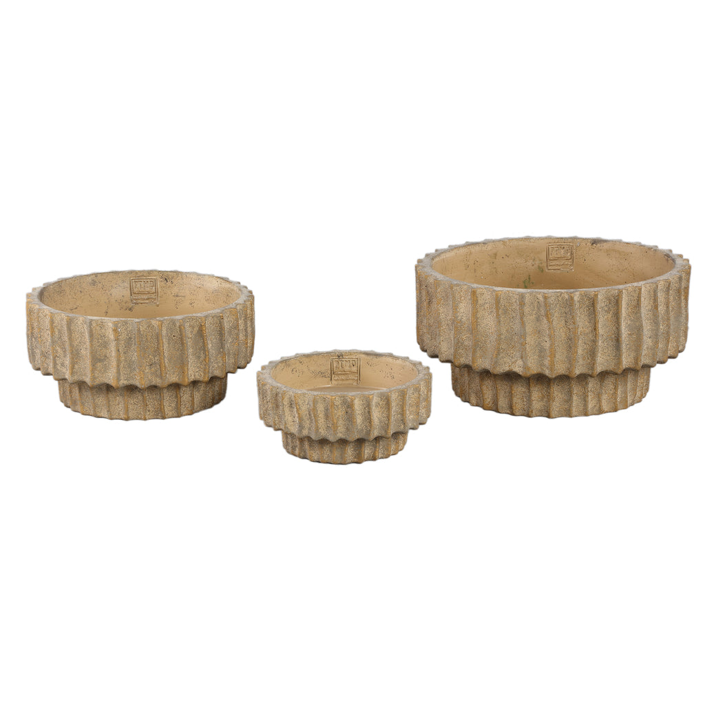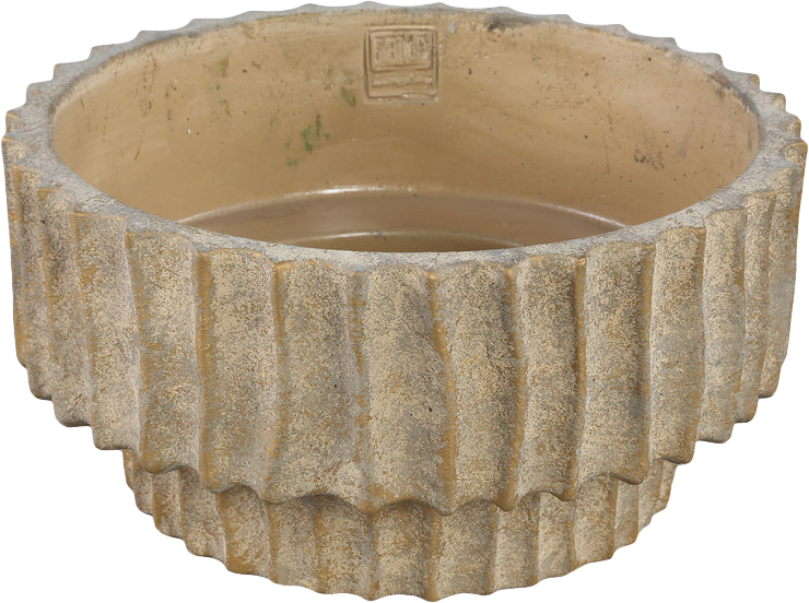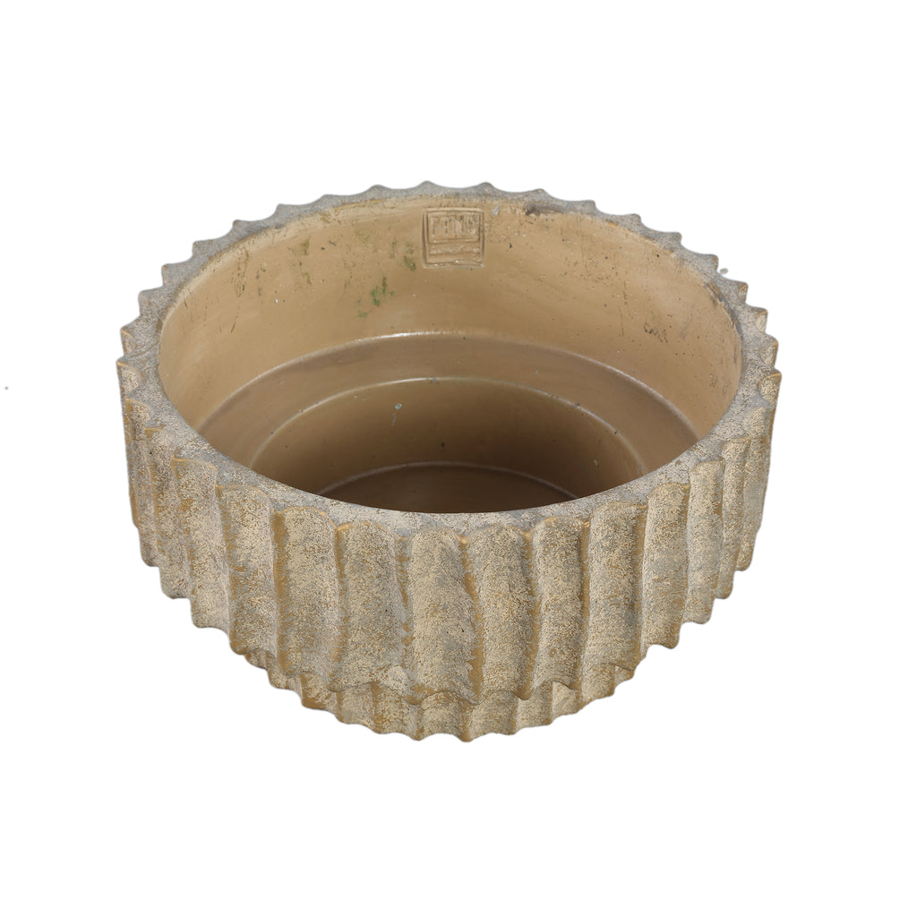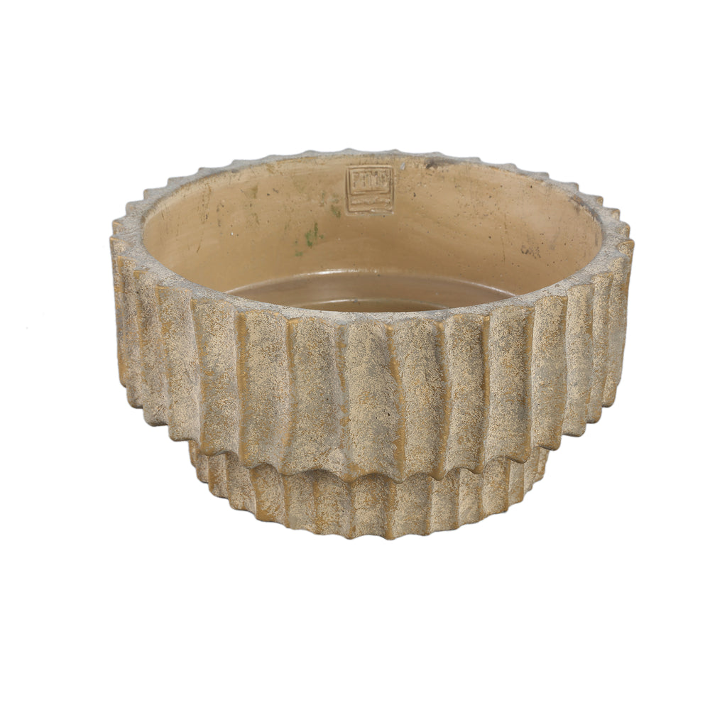 Mitty Bruine Cementpot met Golvende Ribben - Lage Ronde Kom Large Ø30 x H15 cm