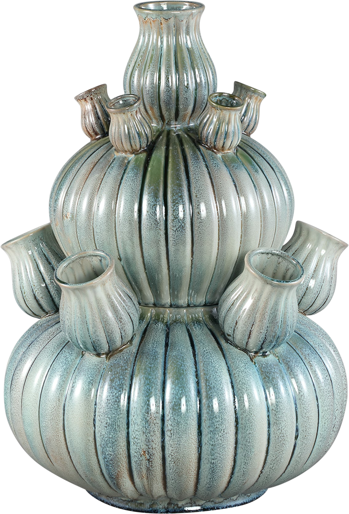 Nolou Turquoise Keramische Tulpenvaas Geribbeld Rond Groot