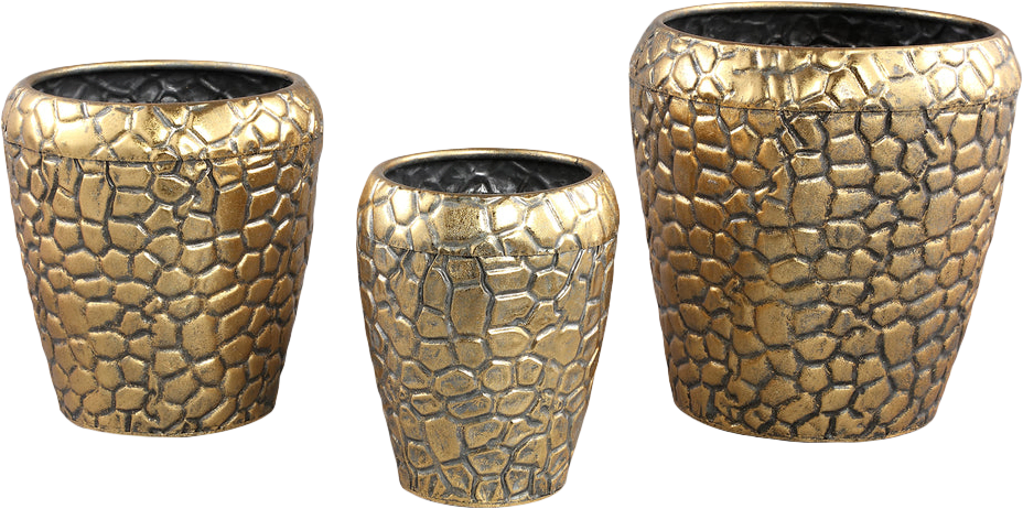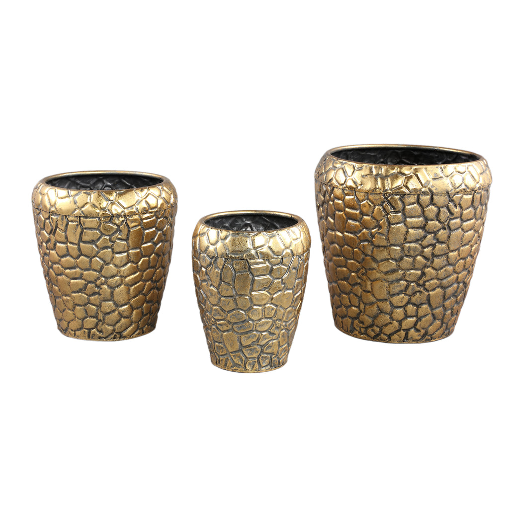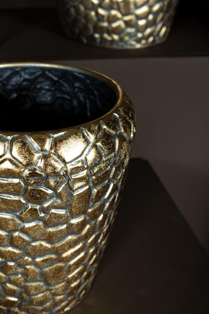 Noza Gold Zinc croco print pot round set of 3 Ø29 x H30 cm