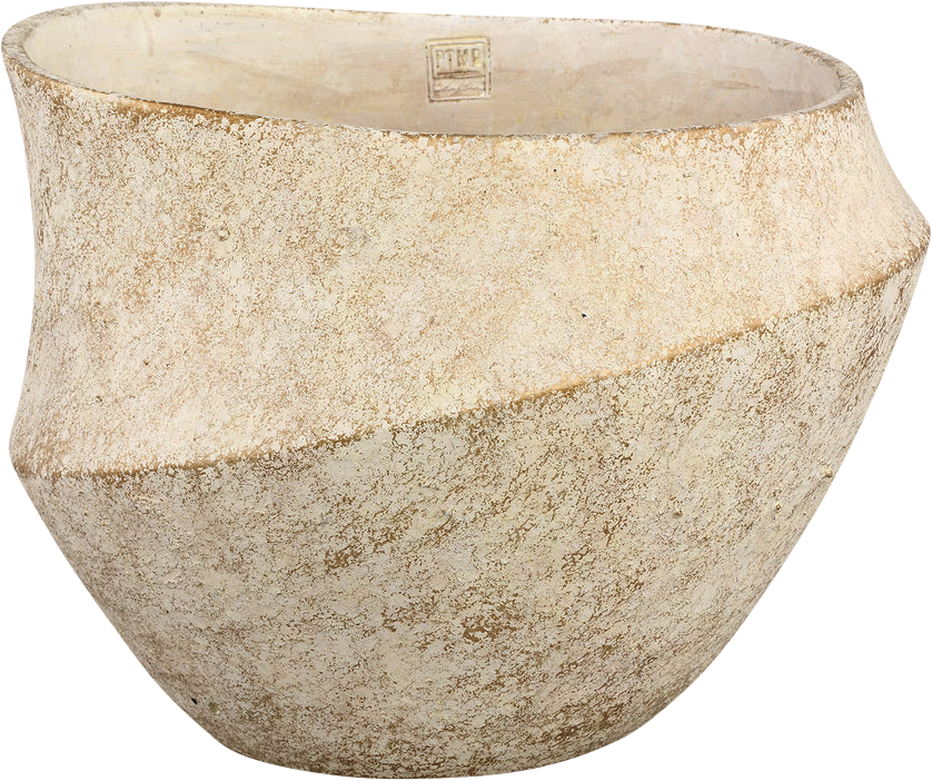 Rishell Cream cement round pot with line big L Ø40 x H33 cm