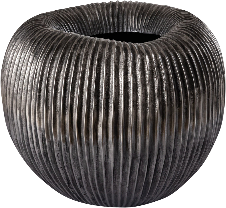 Russel Silver Aluminium Lage Ribbel Grote Pot Ø40 x H34 cm