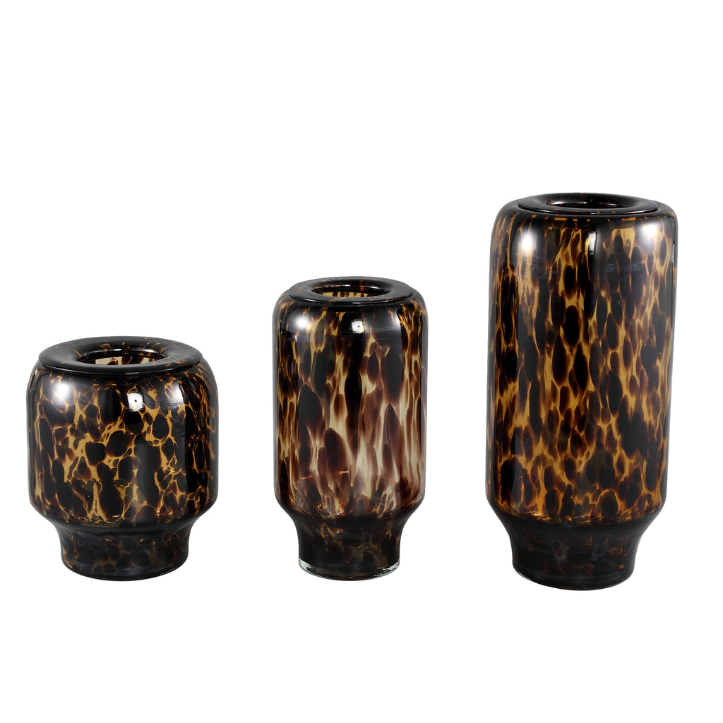 Vika Brown glass vase dotted pattern round L Ø19 x H41 cm