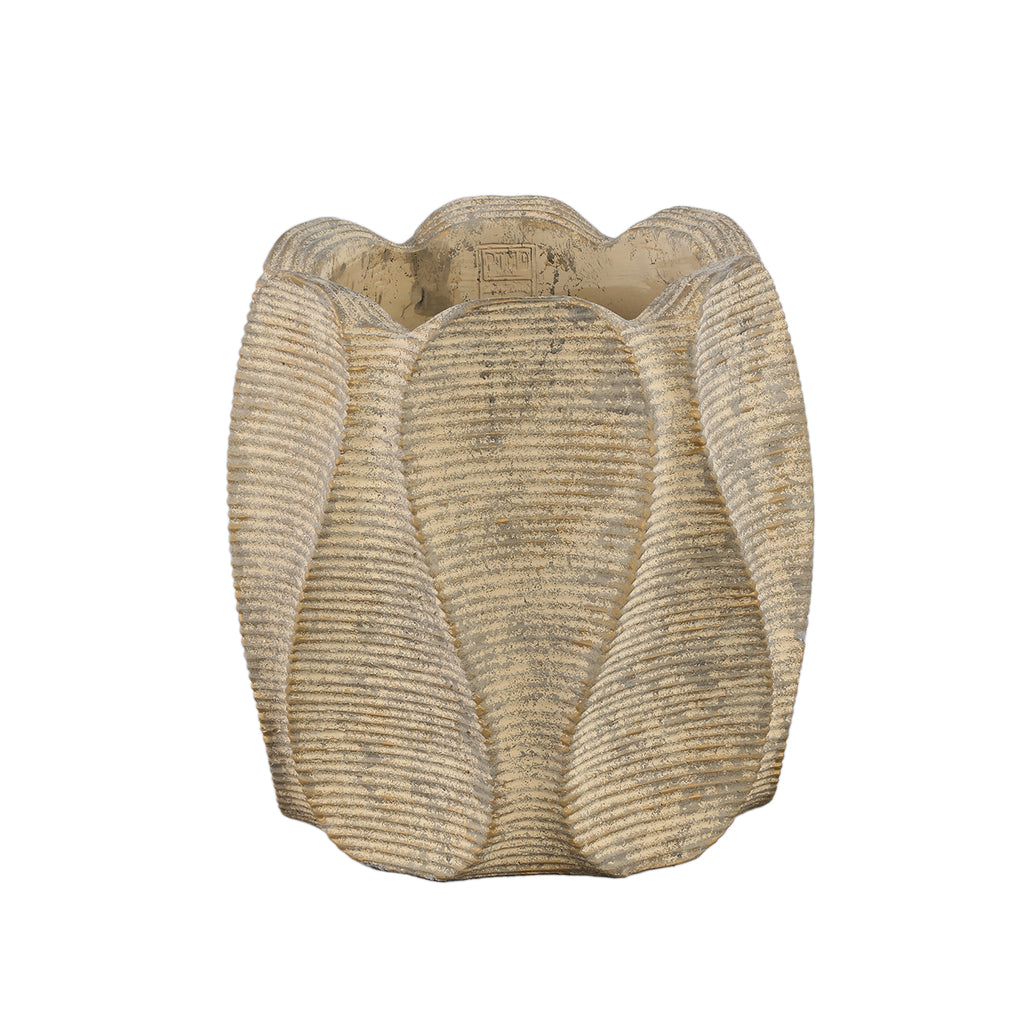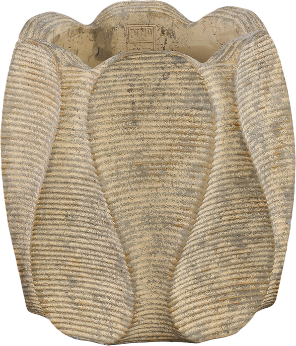 Golvende Ribbetjes Cement Pot in Waxy Bruin - XL Formaat Ø30 x H30 cm