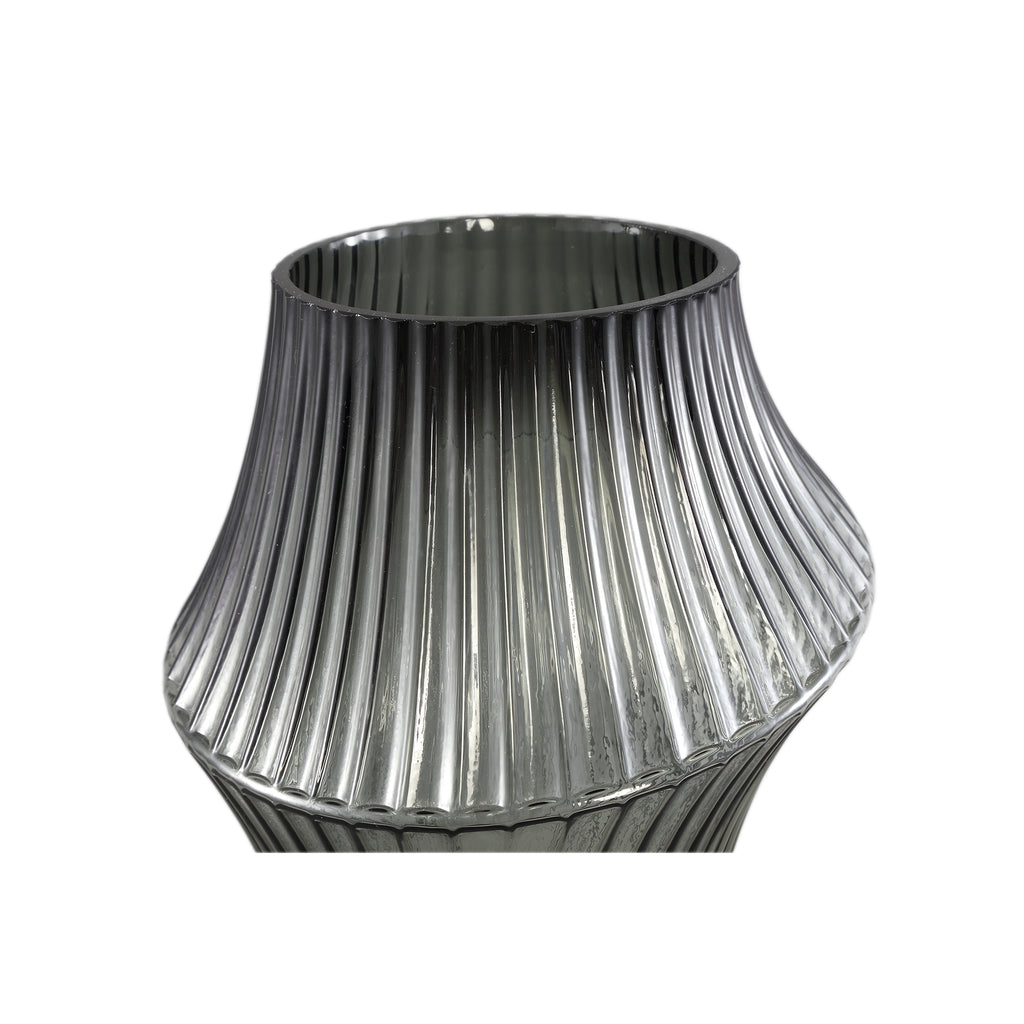 Schuin Gevormde Grijze Glazen Vaas L Ø24 x H30 cm